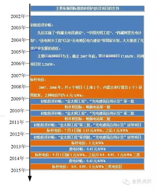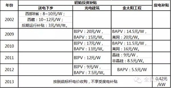 先用一张图来说明一下,我国对光伏产业的补贴历程。