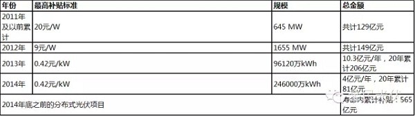 对于分布式光伏项目,2012年及之前基本为初始投资补贴,2013年后开始实行度电补贴;
