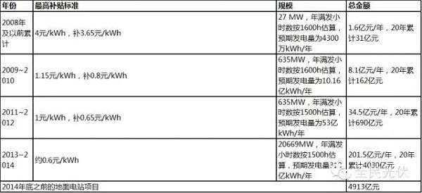 截止2014年底,所有的光伏项目在寿命周期内,累计的补贴金额总计为5478亿元。乍一看这个数字挺大!但我觉得这么算其实是很不科学的。