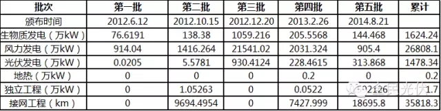 从上表可以看出,五批项目中,容量最大的是风电,为268.1GW;其次是生物质能发电,为16.2GW;光伏的容量仅为14.8GW。