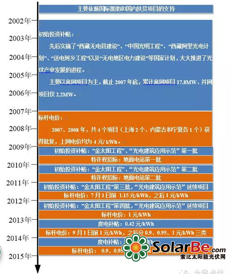 先用一张图来说明一下,我国对光伏产业的补贴历程。