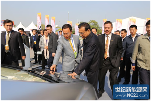 汉能集团主席李河君向李克强总理介绍太阳能全动力汽车