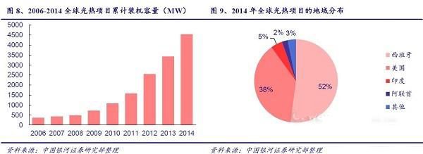 (一)2014年底全球光热项目总装机容量已达4.5GW