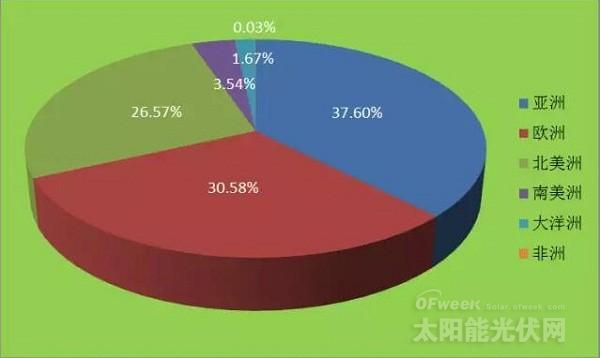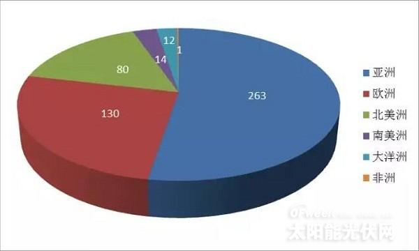 图6 2015全球新能源企业500强各大洲入选企业数