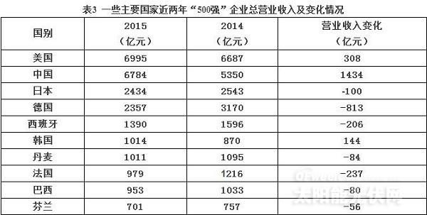 从上榜企业数看,2015“500强”企业中,新兴市场国家上榜企业为234家,比2014的227家增加了7家;而发达国家上榜企业数为266家,比2014的273家减少了7家。新兴市场国家与发达国家二者之间上榜企业数之比为1:1.17(上年则为1:1.20),差距进一步缩小。