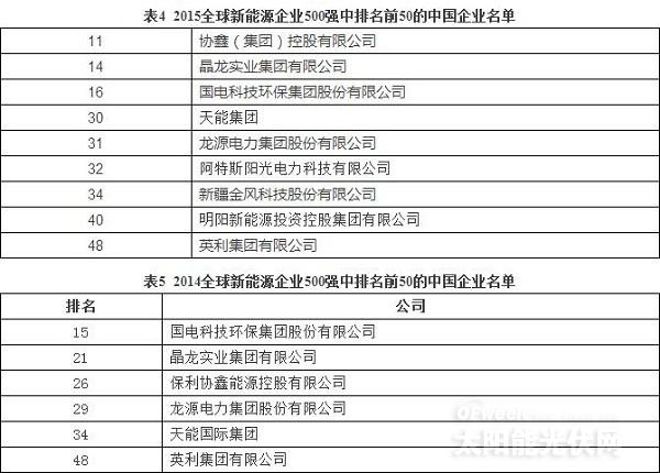 经过多年发展,新能源已经成为全球能源产业的重要组成部分,其在全球能源产业中的地位越来越重要。为更好的分析和把握全球新能源产业发展特点和方向,明确全球新能源的市场格局,树立全球新能源企业的前进标杆,进而促进全球新能源产业的发展,中国能源经济研究院以国家能源局软科学课题《全球新能源企业500强研究》为依托,从2011年至今,连续5年对“全球新能源企业500强”进行跟踪研究。根据最新的统计数据分析,2015“全球新能源企业500强” 呈现出如下特点: