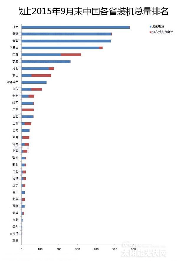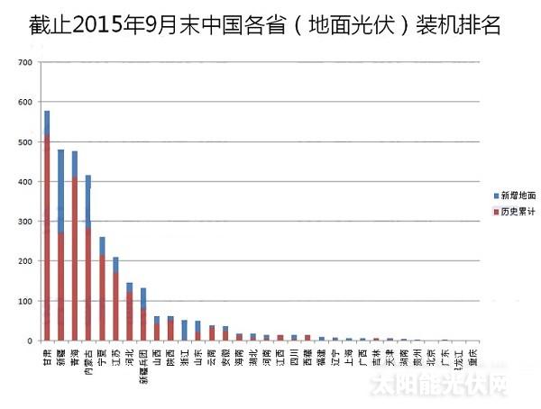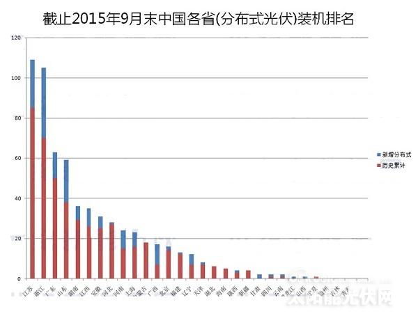截至2015年9月底,全国光伏发电装机容量达到37.95GW。其中,光伏电站31.7GW,分布式光伏6.25GW。