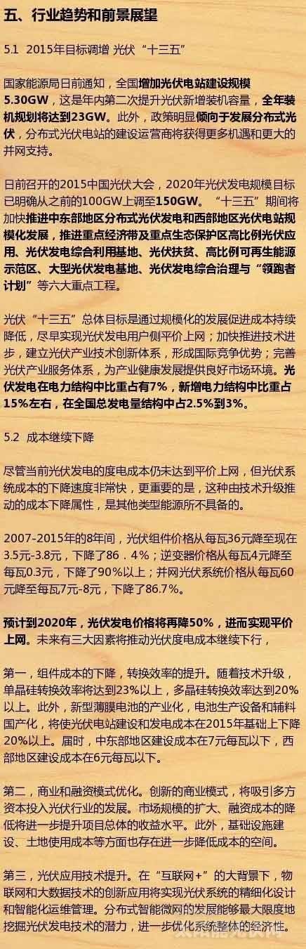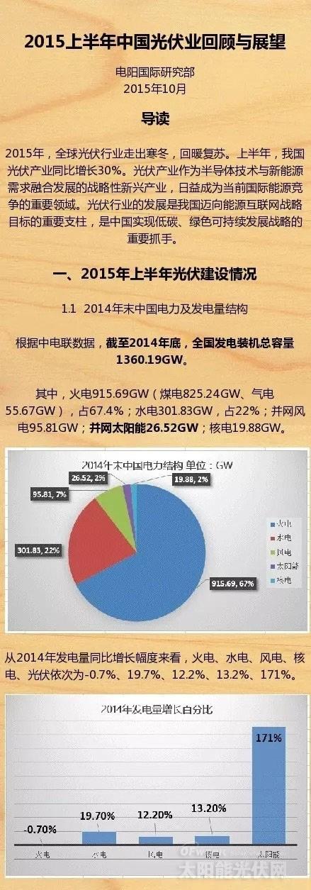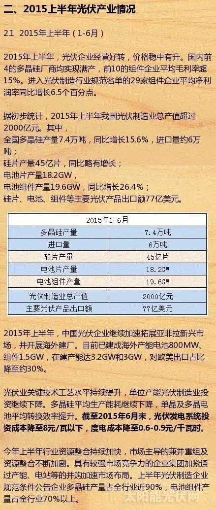 2015年,全球光伏行业走出寒冬,回暖复苏。上半年,我国光伏产业同比增长30%。光伏产业作为半导体技术与新能源需求融合发展的战略性新兴产业,日益成为当前国际能源竞争的重要领域。光伏行业的发展是我国迈向能源互联网战略目标的重要支柱,是中国实现低碳、绿色可持续发展战略的重要抓手。