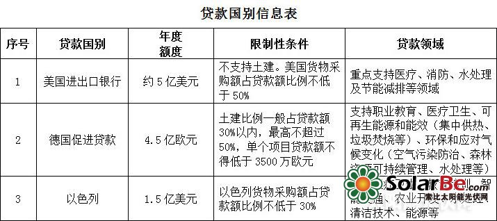 10月20日,国家发展改革委发布了《关于申报2015年外国政府贷款备选项目的通知》(发改办外资[2015]2592号)。《通知》在贷款限制中指明,部分外国政府贷款可用于中国的清洁能源和可再生能源的项目需要。
