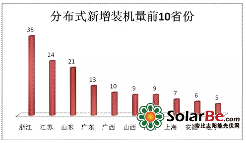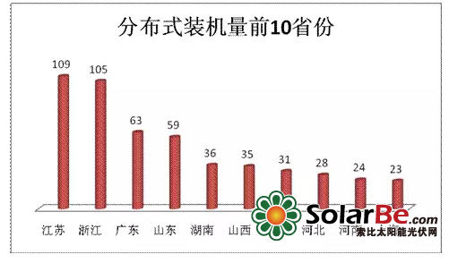 结合国家电网的最新数据,我们发现《简况》中所曝光的分布式发电,在全国电力结构中的占比有了极大的提升。算上光伏电站和分布式光伏,光伏发电在2015年9月的全国电力结构中已经占到相当的份额,达到7%,而分布式光伏发电在9月全国总发电量结构中只占2.5%,同时,数据证明分布式发电在最近两年发展迅速,2014年分布式发电是2010年的10.6倍。 而《简况》数据则有告诉我们,在前三季度,分布式光伏的装机总量就超过了2014年全年总量的近50%。 在分布式装机前10的省份里,东部发达省份占到一半以上 。