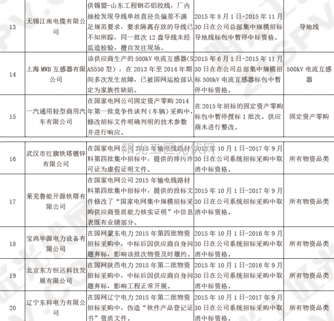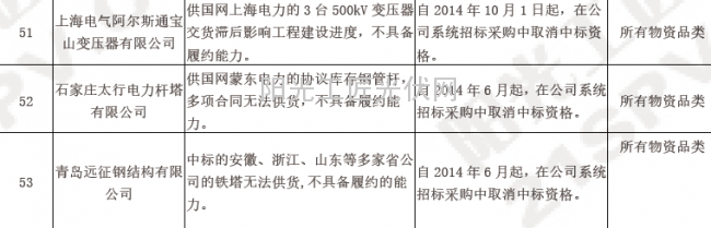 53家企业中14家被暂停中标资格,占违规企业数的26%;1家被暂停授标1批次,占2%,剩余38家则被取消中标资格,占比最高,达72%。
