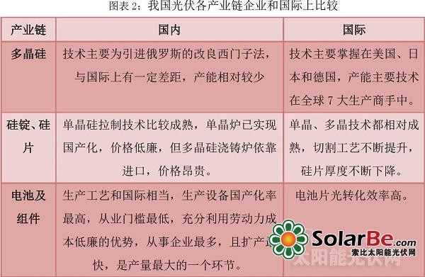 我国光伏各产业链企业和国际上比较,仍存在不小的差距,具体如下: