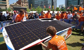 Nuon和Twente两支太阳能车队在比赛五天期间内,贯穿整个沙漠途中内,一直在争夺第一的位置,直到昨天Twente领先夺得冠军。