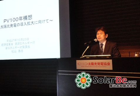 日本光伏发电协会(JPEA)10月23日在东京都举行了“光伏发电研讨会”。经济产业省新能源对策课课长松山泰浩登台,以“PV100年构想~进一步实现光伏发电的导入扩大~”为题发表了演讲。