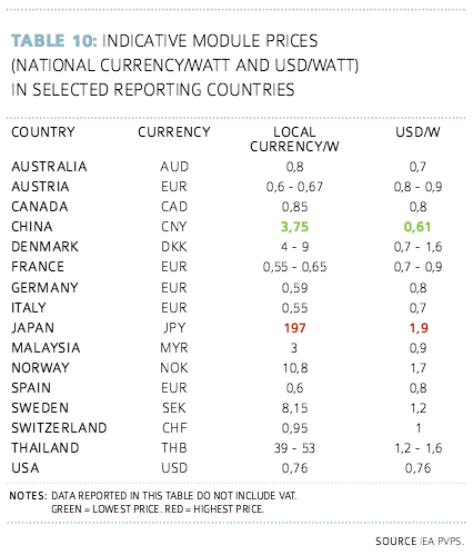 从下表的太阳能光伏组件价格来看,澳大利亚的价格与欧洲很多国家差不多,甚至还比部分国家便宜,与中国和日本相比也非常具有竞争力。