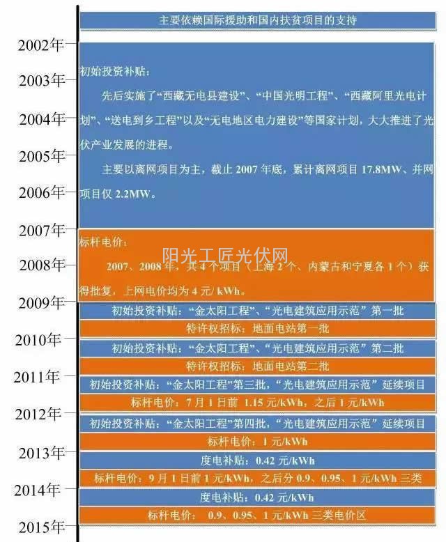 先用一张图来说明一下,我国对光伏产业的补贴历程。