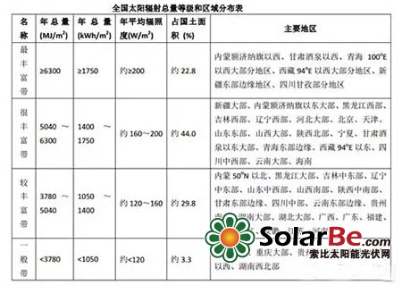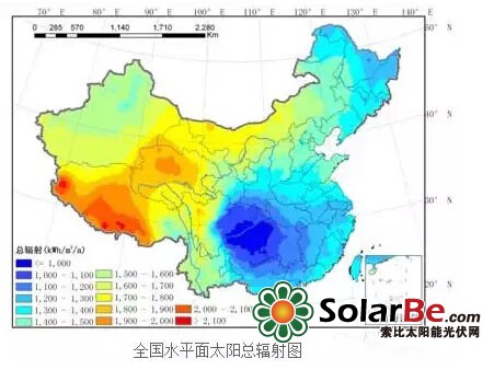 答:全国各地的辐照量及日照时数详见下图,如果想得到更详细的太阳能资源数据,可以从县级气象台(站)、国家气象局公共气象服务中心取得;另外也可以从大型安装商或设计单位得到或者从NASA官方网站获得辐照量参考数据。