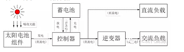 ①光伏(太阳能电池,太阳电池)发电系统,将太阳能转化为电能;