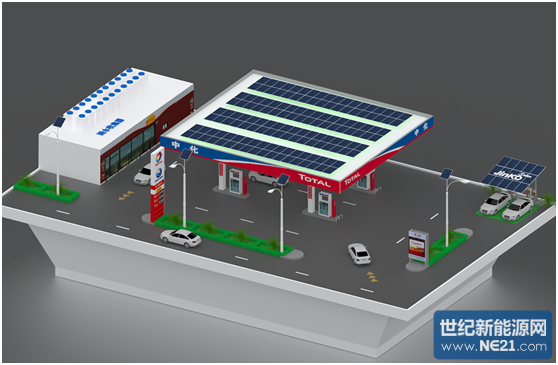 晶科承建的无锡中化道达尔加油站“全光伏应用”项目,分别在屋顶、车棚、路灯等处增加光伏应用,系统总装机容量为30kWp,每年约发电30000度,可节约12000千克标准煤,减排8160千克碳粉尘、29910千克二氧化碳,同时年化收益率高达18%,具有良好的投资理财和节能环保的综合效益。该项目作为国内首个加油站全光伏应用项目,既合理利用了建筑资源,将光伏发电与加油站、停车棚进行有机结合,为加油站提供了电力支持,同时也为土地有限的单位提供了有效的绿色节能解决方案,在光伏系统应用领域内具有首创示范意义。