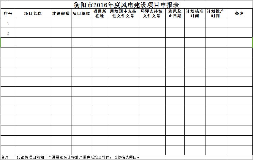 附件:1、衡阳市2016年度风电建设项目申报表
