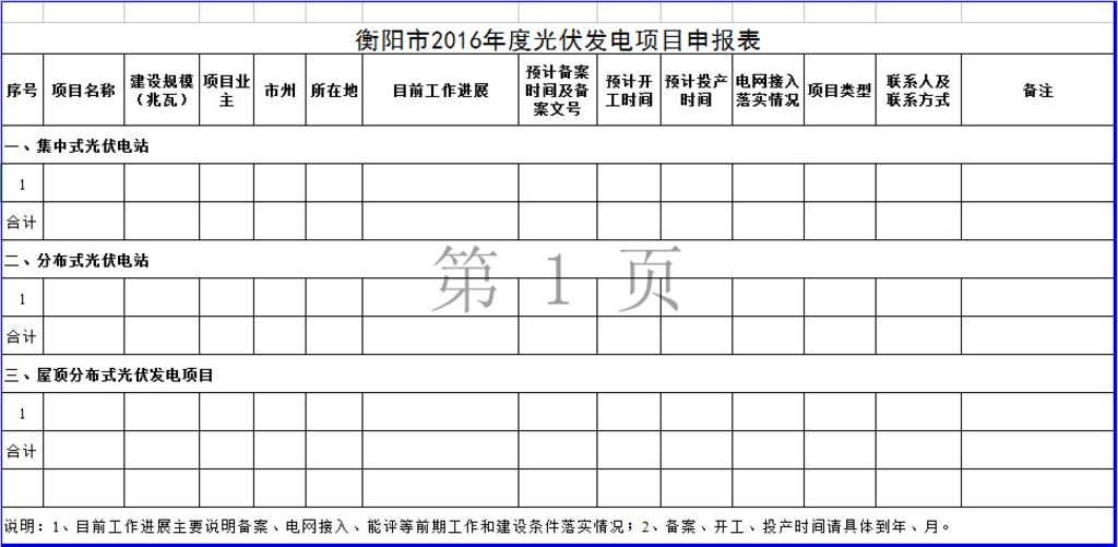 2、衡阳市2016年度光伏发电项目申报表