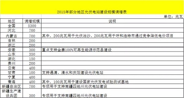 9月24日,国家能源局发布了《关于调增部分地区2015年光伏电站建设规模的通知》,其调整规模如下:
