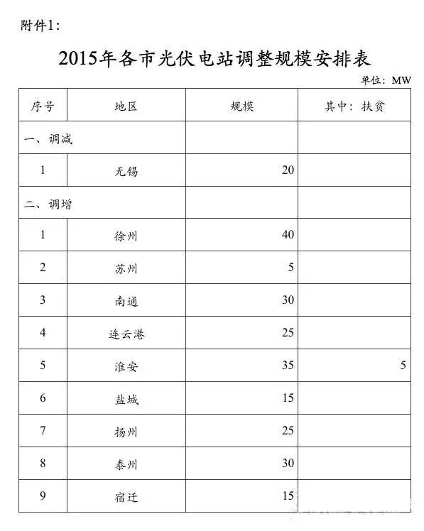 《关于调整部分地区2015年光伏电站建设规模的通知》苏发改能源发〔2015〕1197号