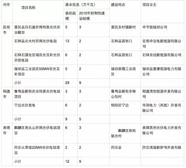 云南发改委发布2015年光伏电站控制性建设规模的通知