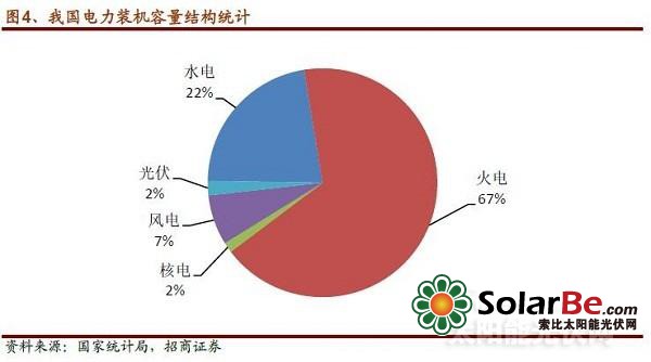 虽然我国光伏电站发展迅猛,但从电源结构上来看,截至2014年底,我国光伏电站装机占全部电力装机的比重约为2%,仍然偏低。