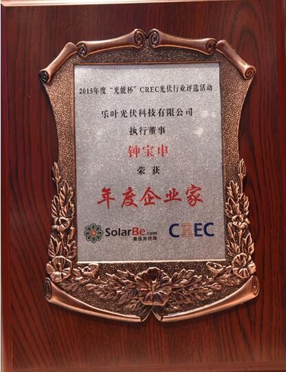 乐叶光伏科技有限公司执行董事的钟宝申领奖