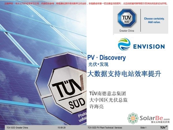 大数据技术作为当下最热门的技术之一,可以说很多产业都想掺上一脚,光伏产业亦不例外。那么大数据技术如何与光伏产业结合?结合后的大数据技术有能对光伏产业产生什么样的影响?大数据的应用真的可以提升光伏电站效率吗?让我们看一看TUV南德的专家怎么说...