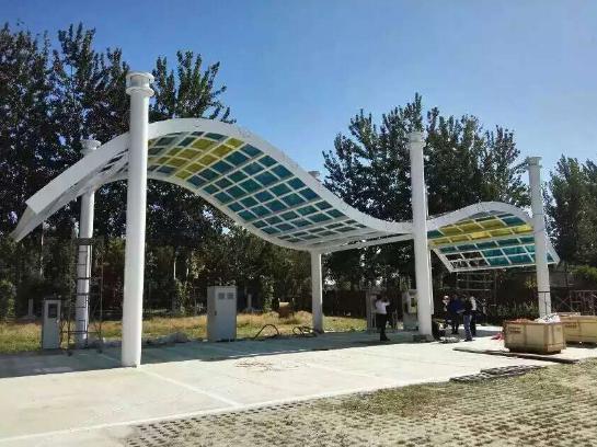安装了汉能BIPV组件的国家电网华商三优的充电车棚,每年发电量约1.5万度