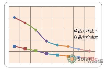 综合来看,尽管单多晶都在进步,但多晶相对于单晶在晶体生长环节的传统成本优势正在下降。因此,铸锭与拉晶成本对比,单晶VS多晶,多晶勉强维持着一定的相对优势,多晶的对比优势在缩小。