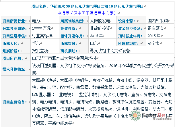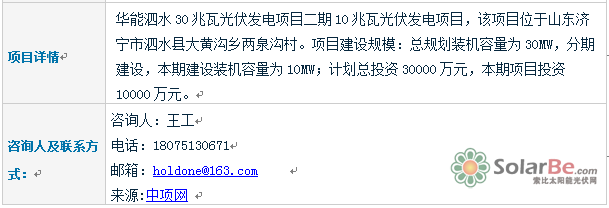 项目名称:华能泗水30兆瓦光伏发电项目二期10兆瓦光伏发电项目