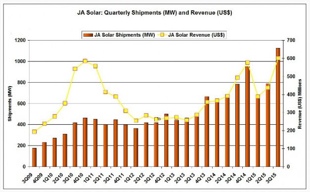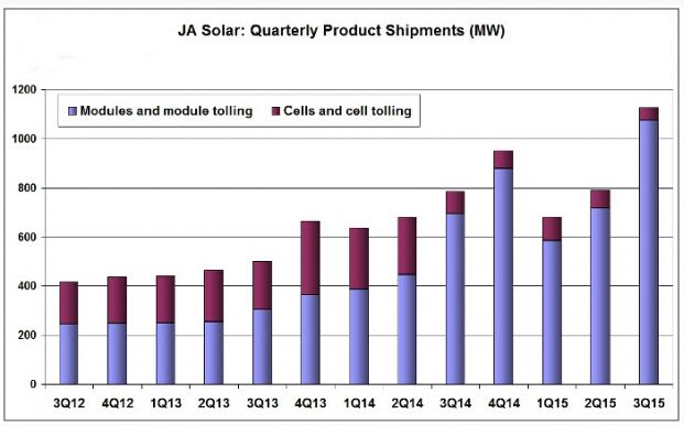 索比光伏网讯:“硅基组件超级联盟”成员晶澳太阳能(NASDAQ:JASO)日前报告2015年第三季度创纪录的出货量和收入,保证此前的全年目标将得以实现,并且今年跻身光伏行业市场前五名。