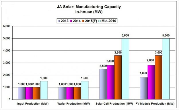 晶澳太阳能还宣布,到2016年中旬其将2015年3.6GW的太阳能电池和组件产能各扩大到5GW