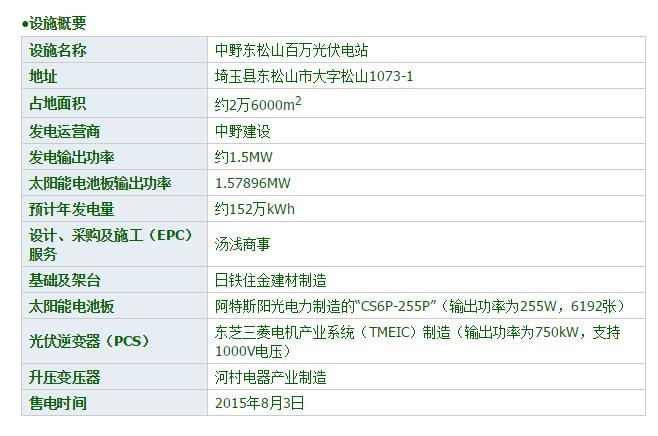 图1:输出功率为1.5MW的“中野东松山百万光伏电站”