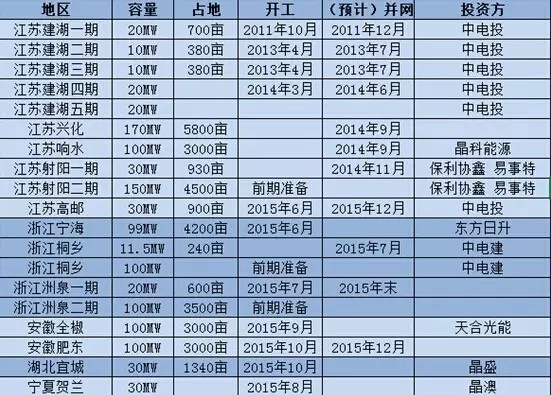 近年来渔光一体项目不完全统计(含建成及规划中)