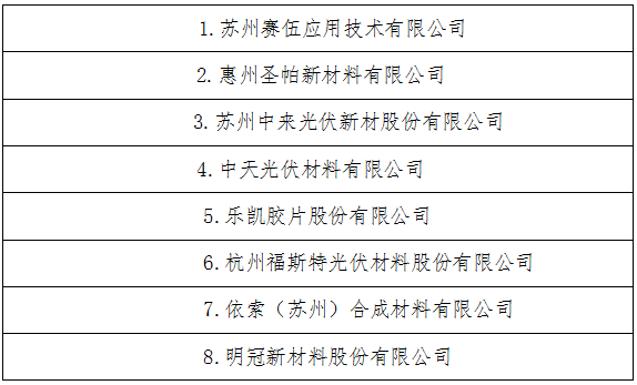 通过光伏背板材料“领跑者”耐久性阶段测试的企业清单