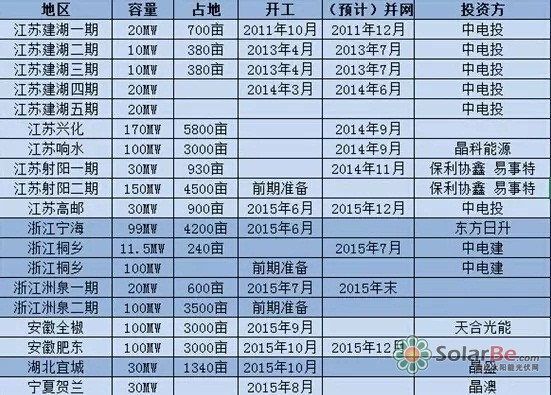 近年来渔光一体项目不完全统计(含建成及规划中)