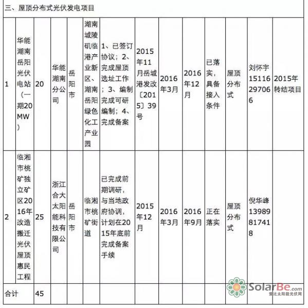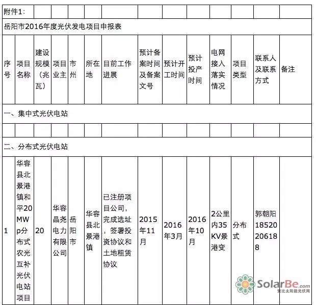 省能源局《关于上报2016年光伏发电项目的通知》要求,2015年11月11日至12日我委组织市县两级发改、电力、国土等部门对各企业上报的2016年光伏发电拟建项目进行了初步审查评估。经研究,我市2016年拟申请列入湖南省光伏发电建设计划的项目22个,共计445MW,现予公告(详见附件)。