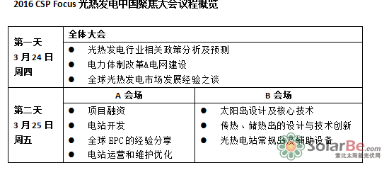 CSP Focus团队专注国内外光热发电领域超过五年,主要从事会议组织、出国考察、培训、商务撮合等服务。自2011年起已在中国、印度、南非、中东北非等全球主要光热发电新兴市场举办数十场行业峰会,以及数次带领中国代表团赴西班牙、美国等地进行光热发电海外实地考察。“CSP Focus”已逐渐成为海内外光热发电人士公认的高质量交流平台。2016光热发电中国聚焦大会将于2016年3月24-25日在北京召开,届时将有300位海内外光热发电行业领袖和嘉宾到场,大会组委会欢迎广大业内人士的参与。
