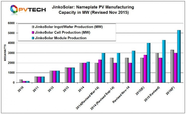 晶科能源表示,到2016年将进一步扩大硅锭/硅片、太阳能电池及太阳能电池组件生产能力,以满足日益增长的需求。