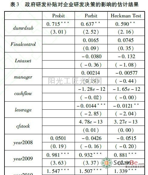 考虑到政府的研发补贴具有激励效应和挤出效应,政府研发补贴对企业研发投资的影响是不确定的,本文通过收集在沪深两市上市的国内光伏行业上市公司2007-2011年的微观数据,实证分析发现政府对光伏企业的研发活动进行补贴可以提高整个光伏行业企业参与研发投资的平均概率,政府对光伏行业企业研发活动的补贴平均来看能激励企业进行研发投资,即光伏行业政府的研发补贴对光伏企业的研发投资总体上具有激励作用而非替代作用,但这种激励作用非常有限。