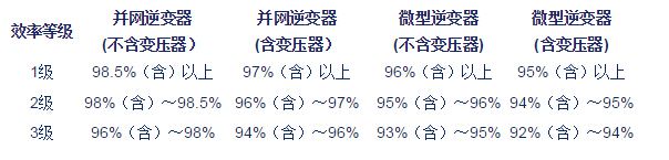 表1:光伏并网逆变器“领跑者”发电效率等级评定原则
