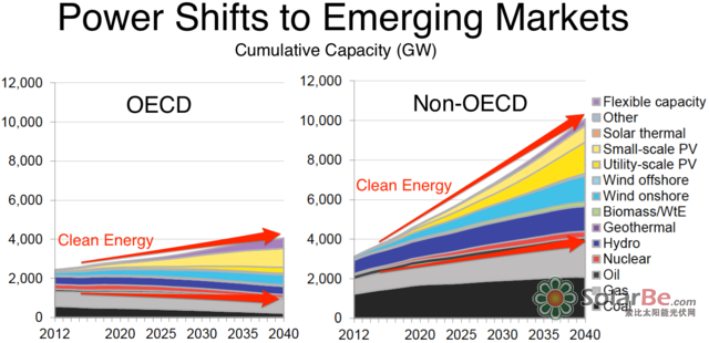 事实上,绝大多数的新兴市场在风能、太阳能和水能方面都很富有。在价格方面,新兴市场的风能和太阳能已经很有竞争力,面向大面积供电短缺的蓄电池价格继续下滑。