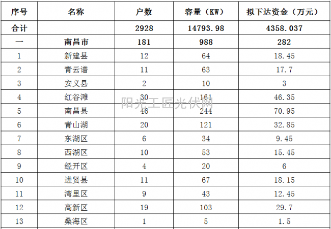江西省万家屋顶光伏发电示范二期工程第二批建设计划