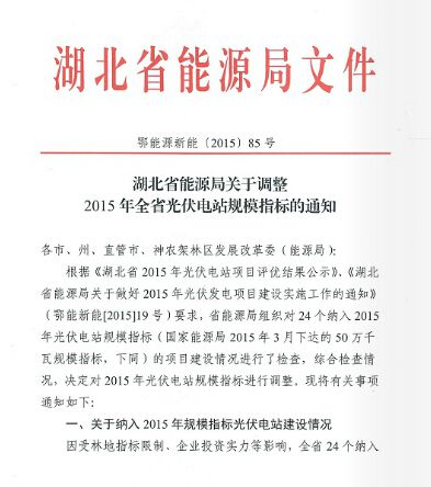 【政策原文】湖北省能源局取消6家企业168MW光伏指标