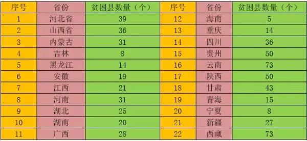 国内首批光伏扶贫的试点省份包括河北、山西、安徽、甘肃、宁夏、青海6省(区)开展试点,每个省(区)各选取5个贫困县,采取以村为单位整体推进(一次性覆盖到全村符合条件的贫困户)。除试点外,我国国家及贫困县(见下表)、省级贫困县是重点发展的地区。