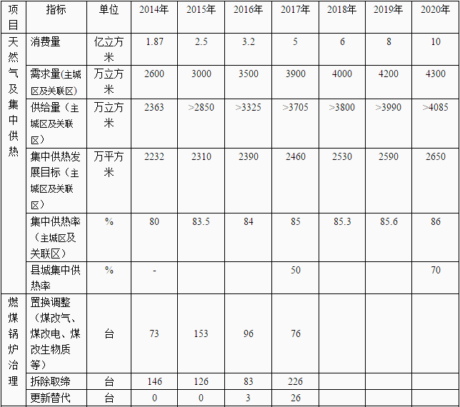 5、天然气利用规模:2017年力争达到5亿立方米以上,2020年力争达到10亿立方米以上。